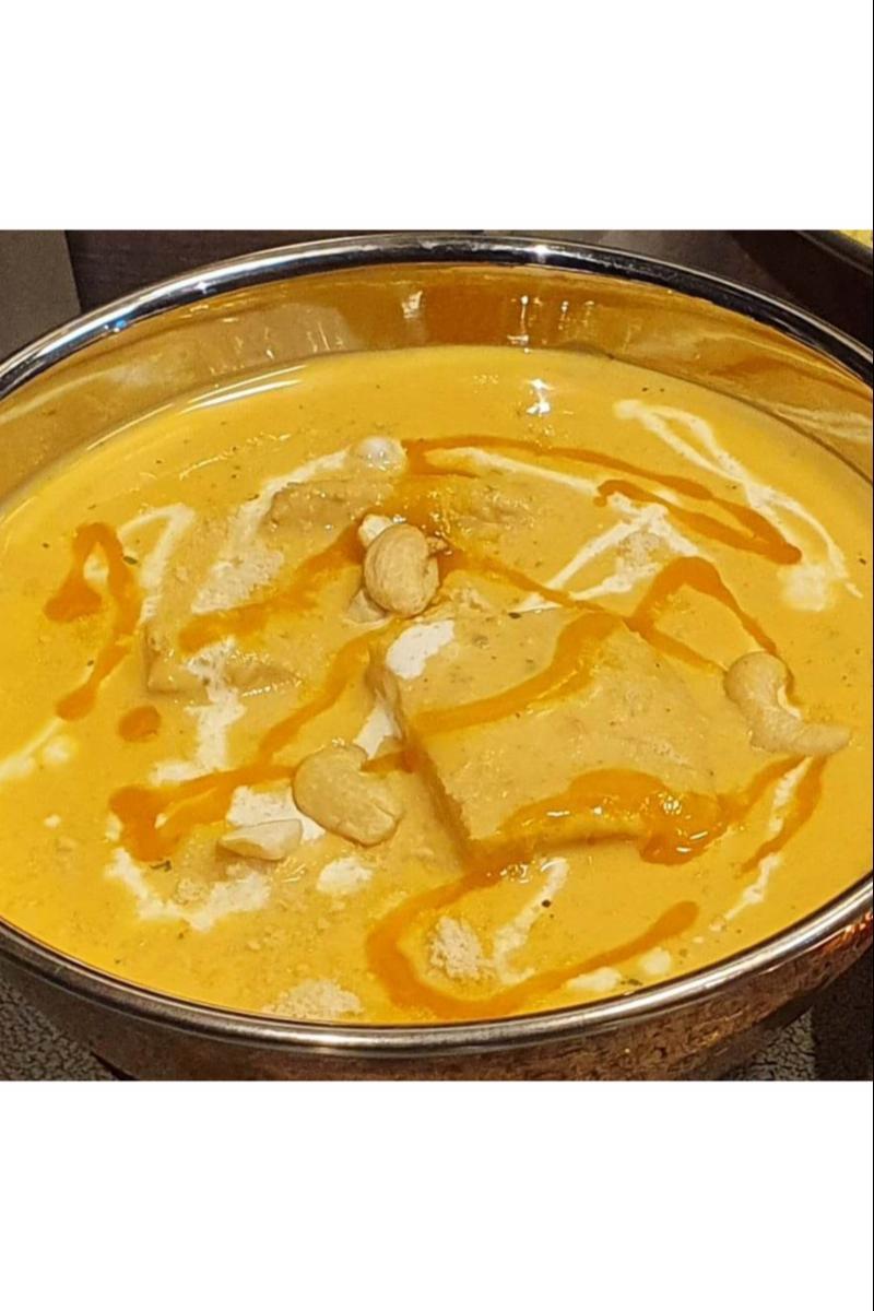 Grillet kylling med cashewnøtter, tomater og mango kremet spesiell saus. Smak av mango