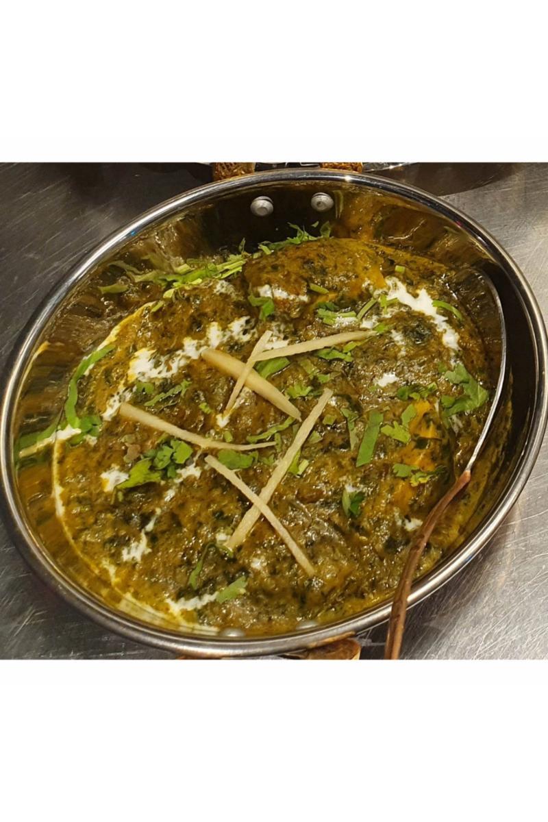 lamb tilberedt med spinat, ingefær, hvitløk og krydder